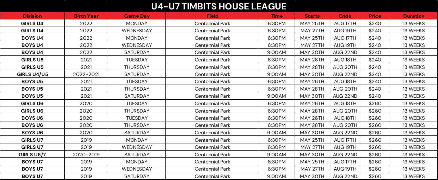 U4-U7 Timbits House League Schedule