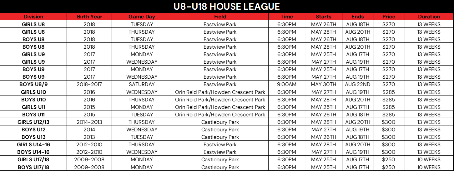U8-U18 House League Schedule